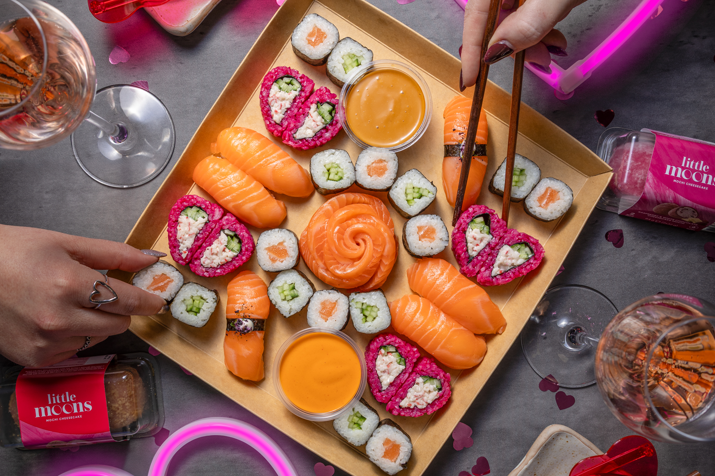 Our Valentines Sharer serves up 30 pieces of sushi, plus a salmon rose, for just £15.95.